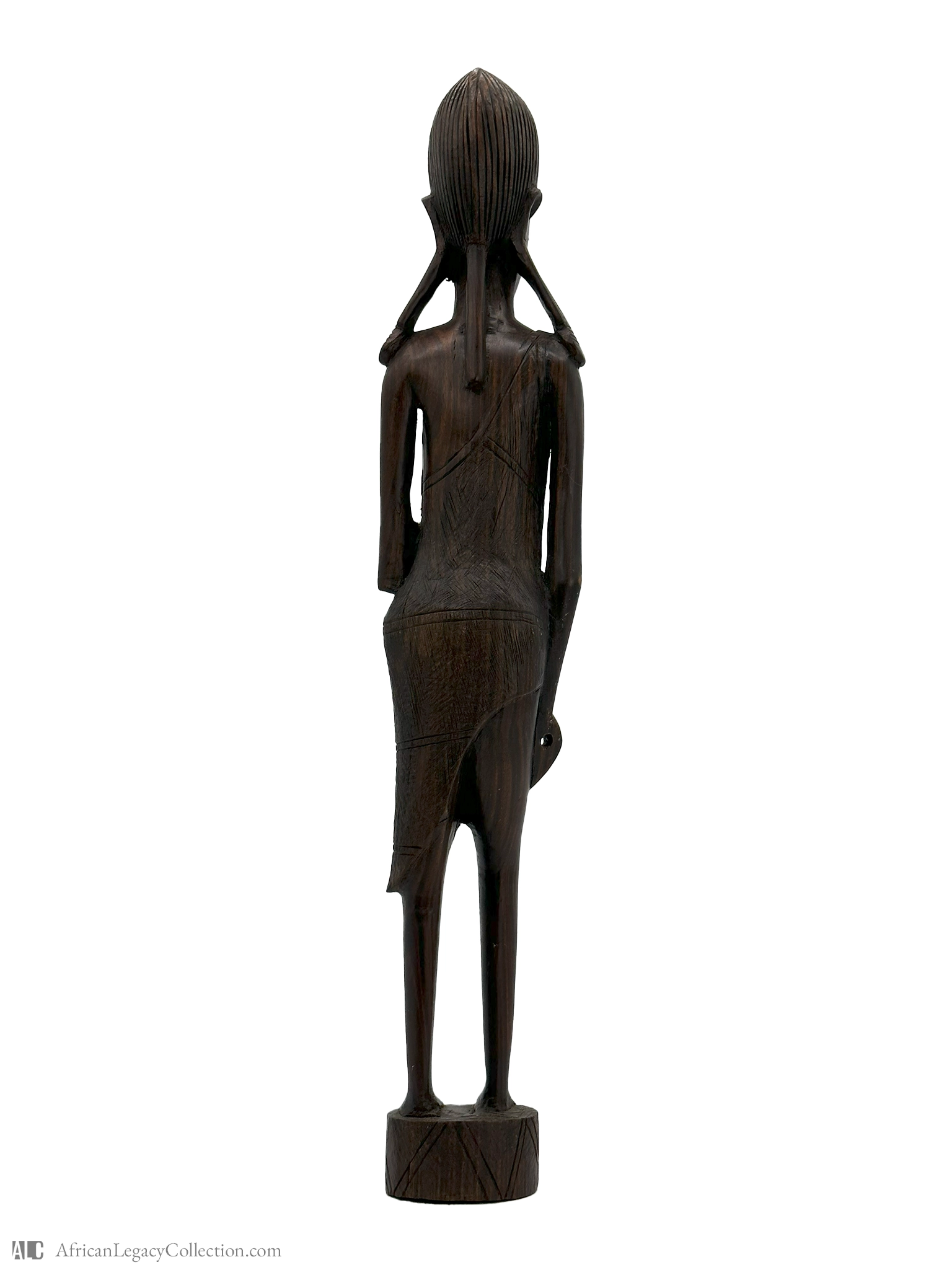 This carved wooden figure likely originates from Eastern Africa, serving as a representation of cultural identity and human form. Such statues are often created for ceremonial purposes or as symbols of ancestral reverence, showcasing the artistry and spiritual beliefs of the people.