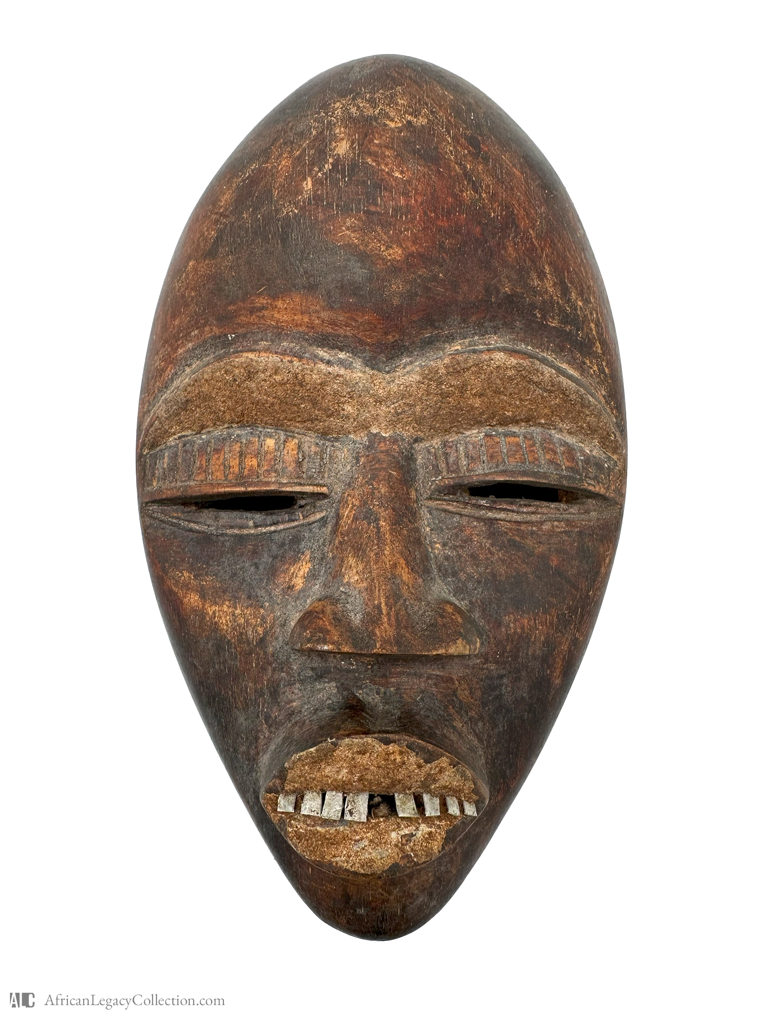 This mask is a classic example of African ceremonial artistry, likely originating from the Dan people of West Africa. It serves a dual purpose in traditional rituals: to embody spirits and represent ancestral figures. These masks are traditionally used in dances and ceremonies to connect with the spiritual world and honor ancestors.