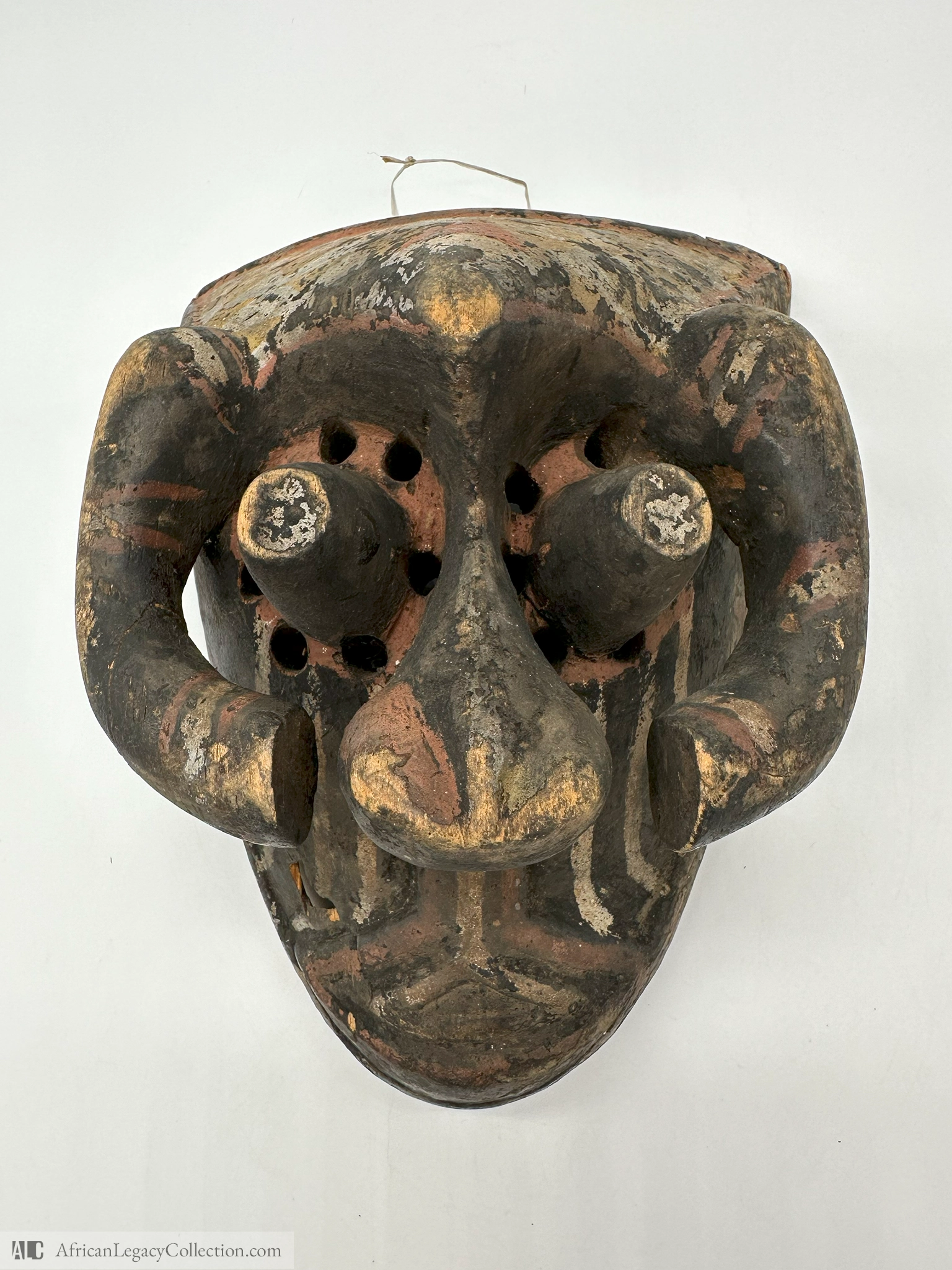 Crafted from wood and adorned with polychrome pigments, the mask’s creation involved intricate carving techniques. It dates to the late 19th to early 20th century, highlighting the period’s rich tradition of mask craftsmanship in West African societies. The mask is significant for its role in preserving oral histories and cultural narratives.