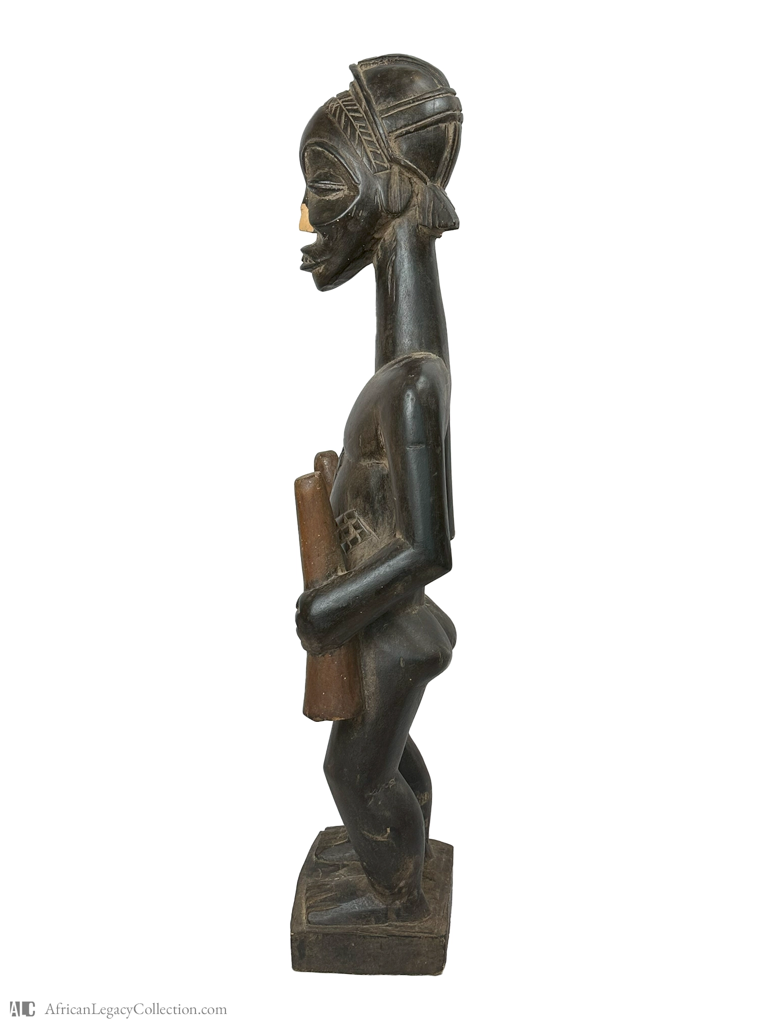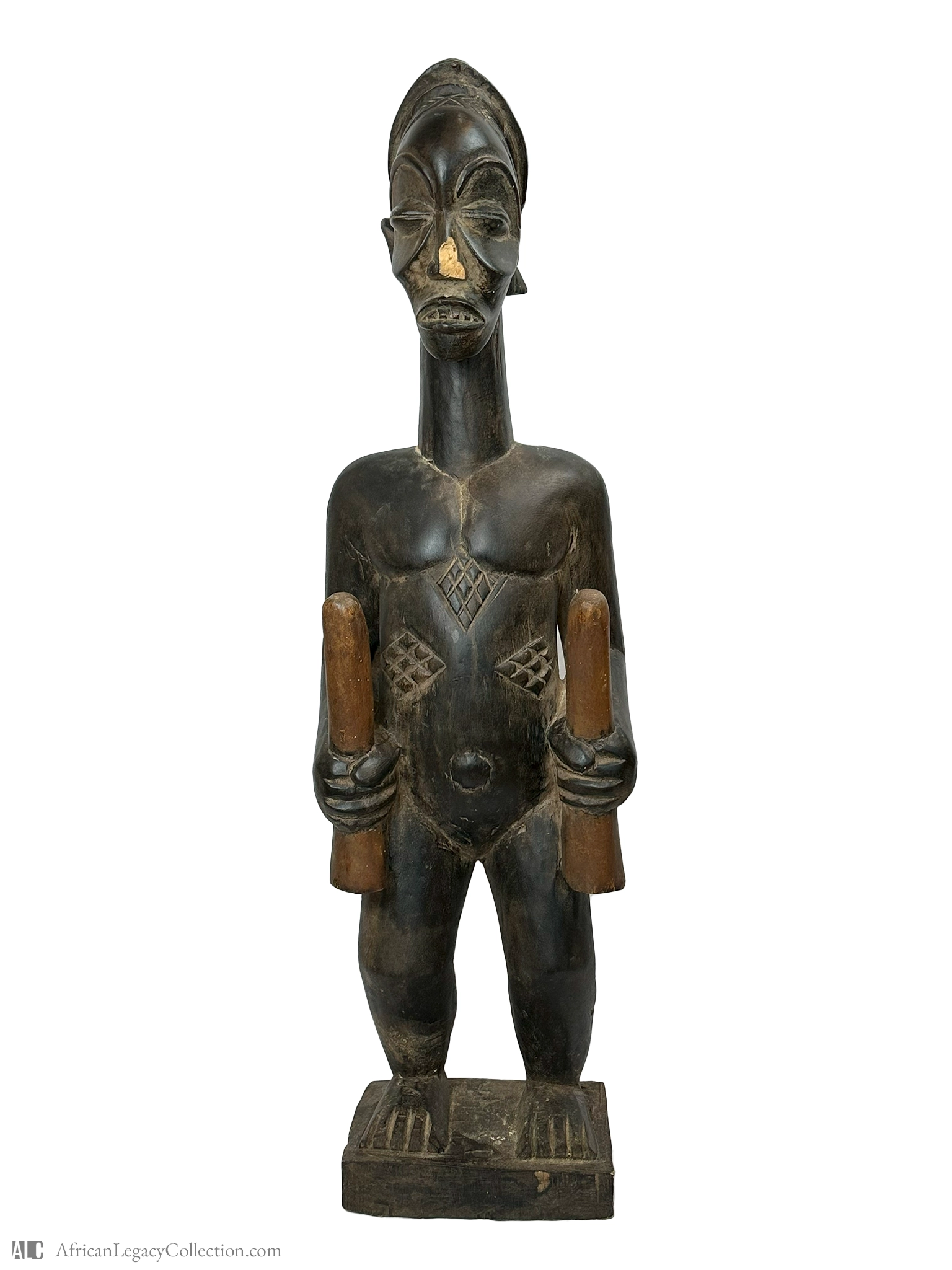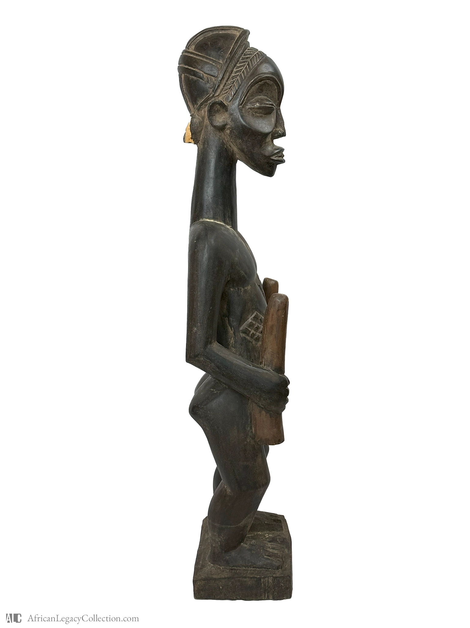 Crafted from wood, the sculpture exhibits detailed carving techniques and prominent scarification motifs indicative of cultural identity and status. It belongs to a long-standing tradition of figurative sculpture in African art, historically used in rituals and community events. The piece’s detailed craftsmanship highlights cultural values and artistic heritage.