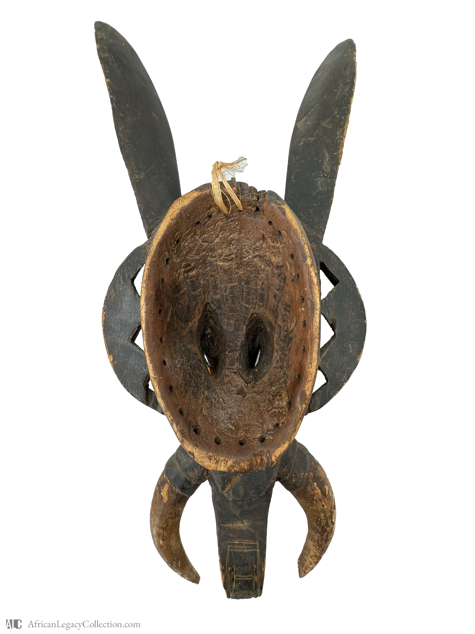 This artifact is an African mask featuring an antelope motif, likely originating from the Bamana people of Mali. Such masks are traditionally used in rituals associated with agrarian themes and societal initiations, playing an important role in cultural ceremonies.