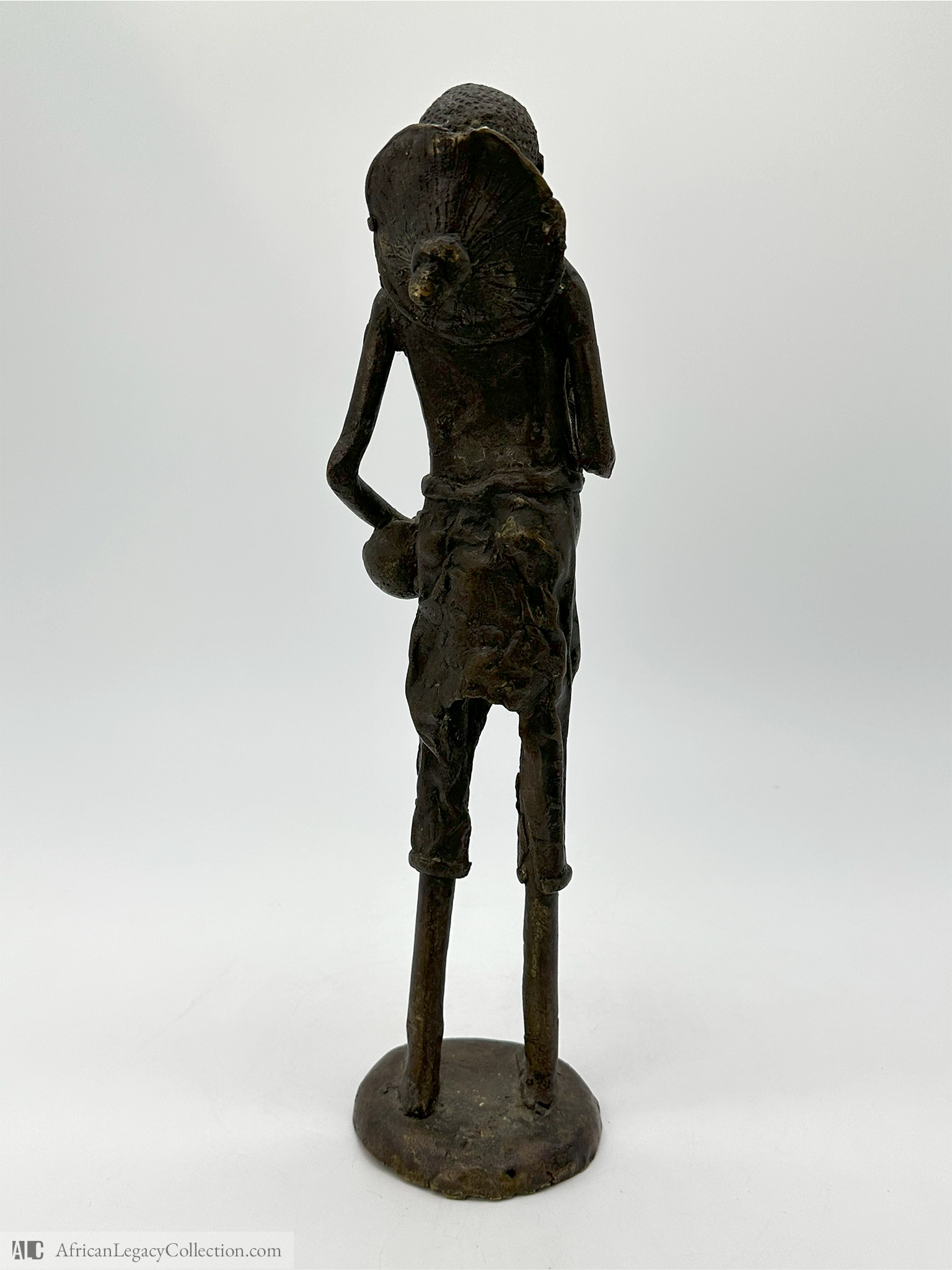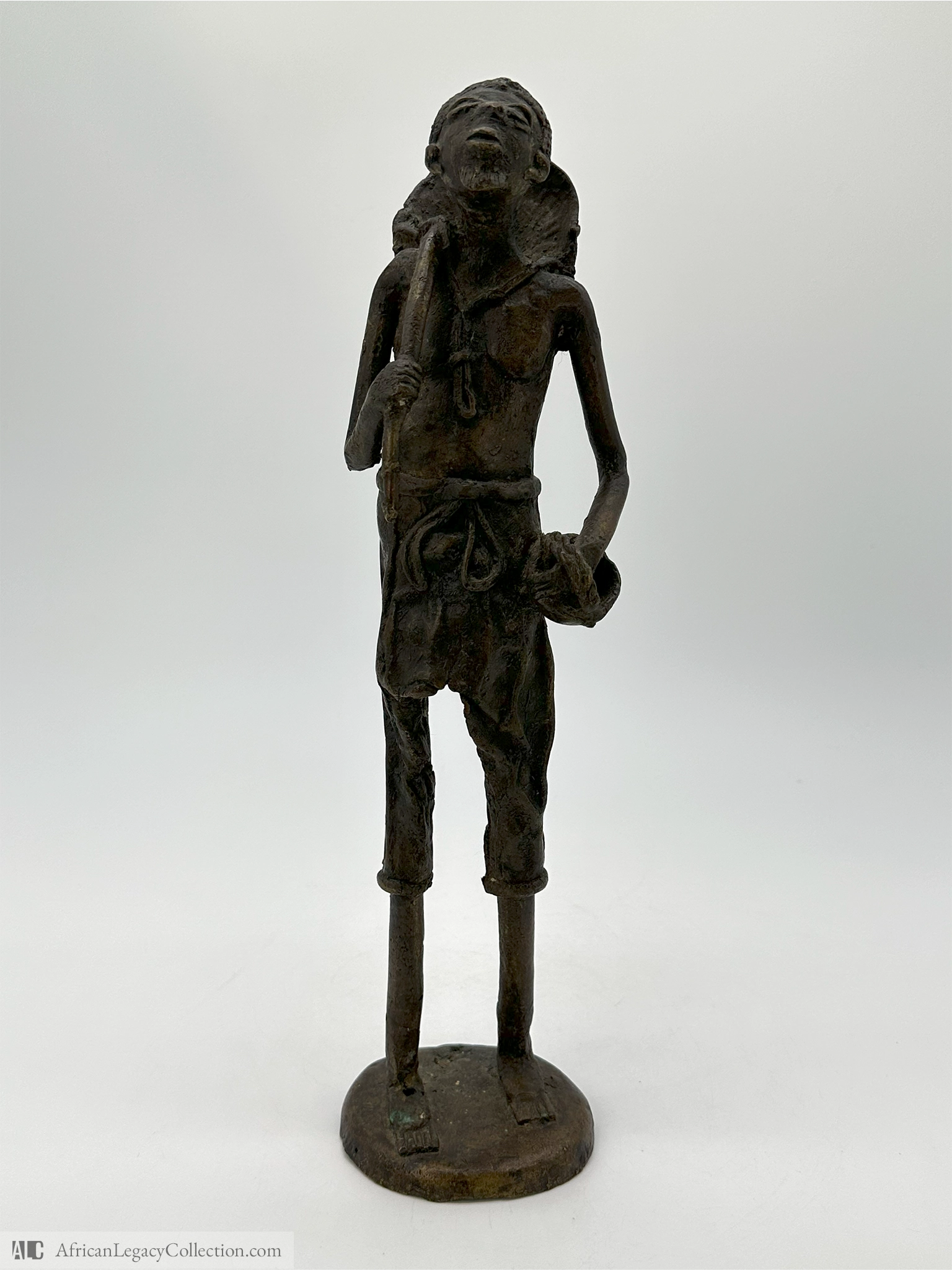 The piece is crafted using the lost-wax casting technique, a traditional method known for its detailed and intricate form. This method is historically significant in West African art, reflecting the technical skill and artistic heritage of the region. The sculpture demonstrates the cultural importance of honoring ancestry and preserving ancestral memory.