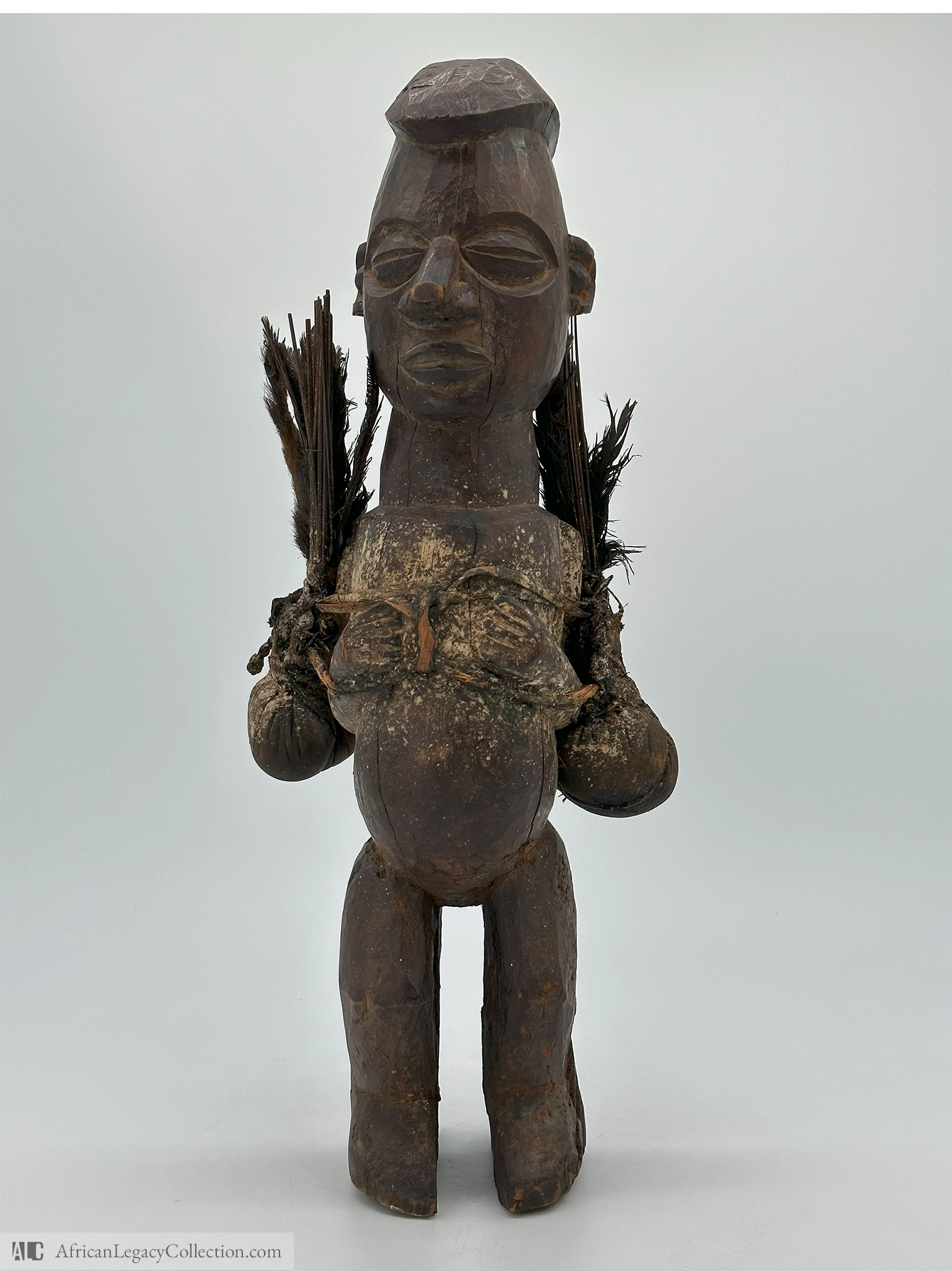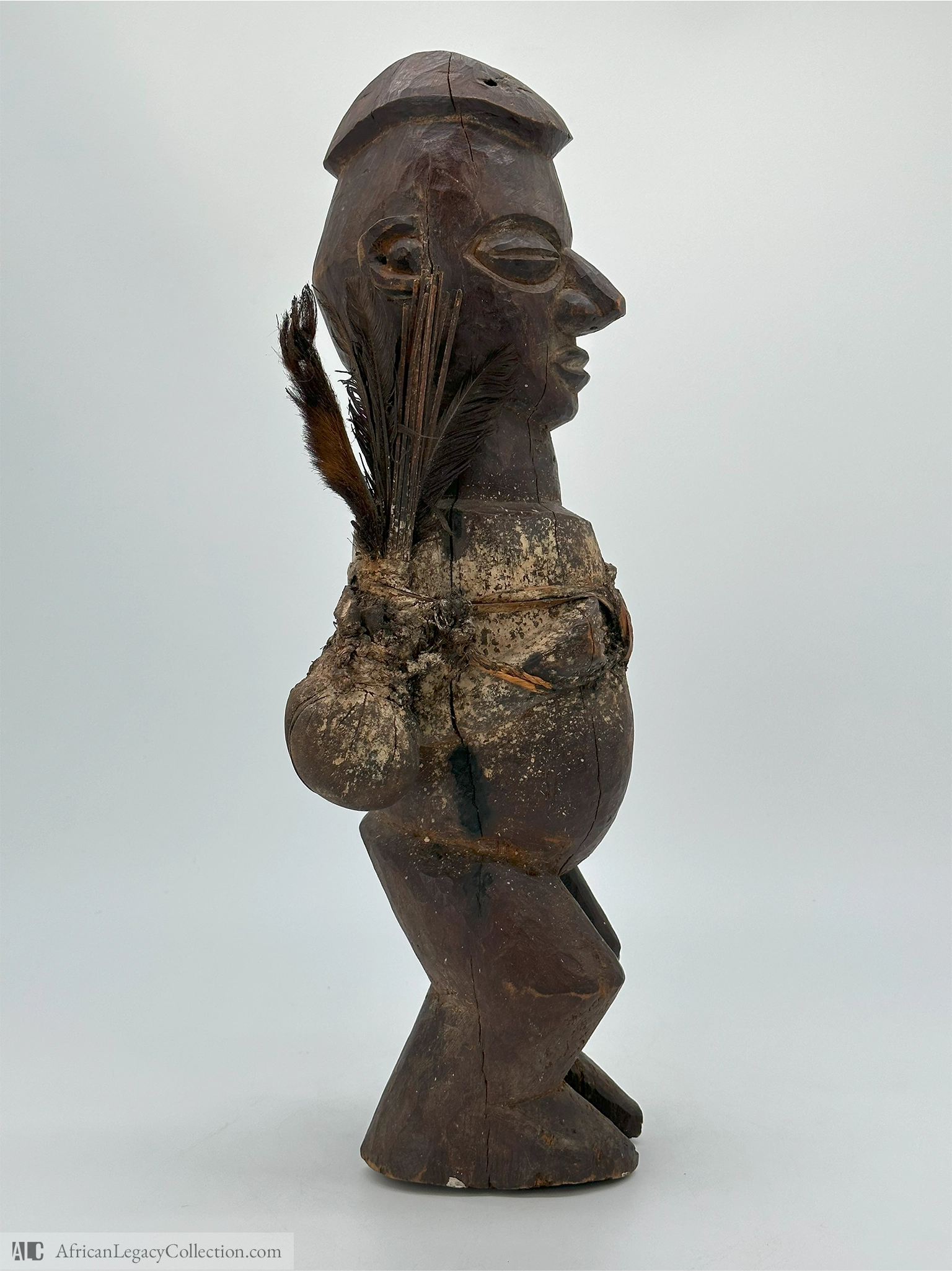Crafted primarily from wood, with notable use of natural fibers, this figure displays elements common in Central African spiritual art. Such figures were significant during the late 19th and early 20th centuries, reflecting the cultural emphasis on spiritual intercession and protection. Its intricate detailing highlights its importance in traditional practices.