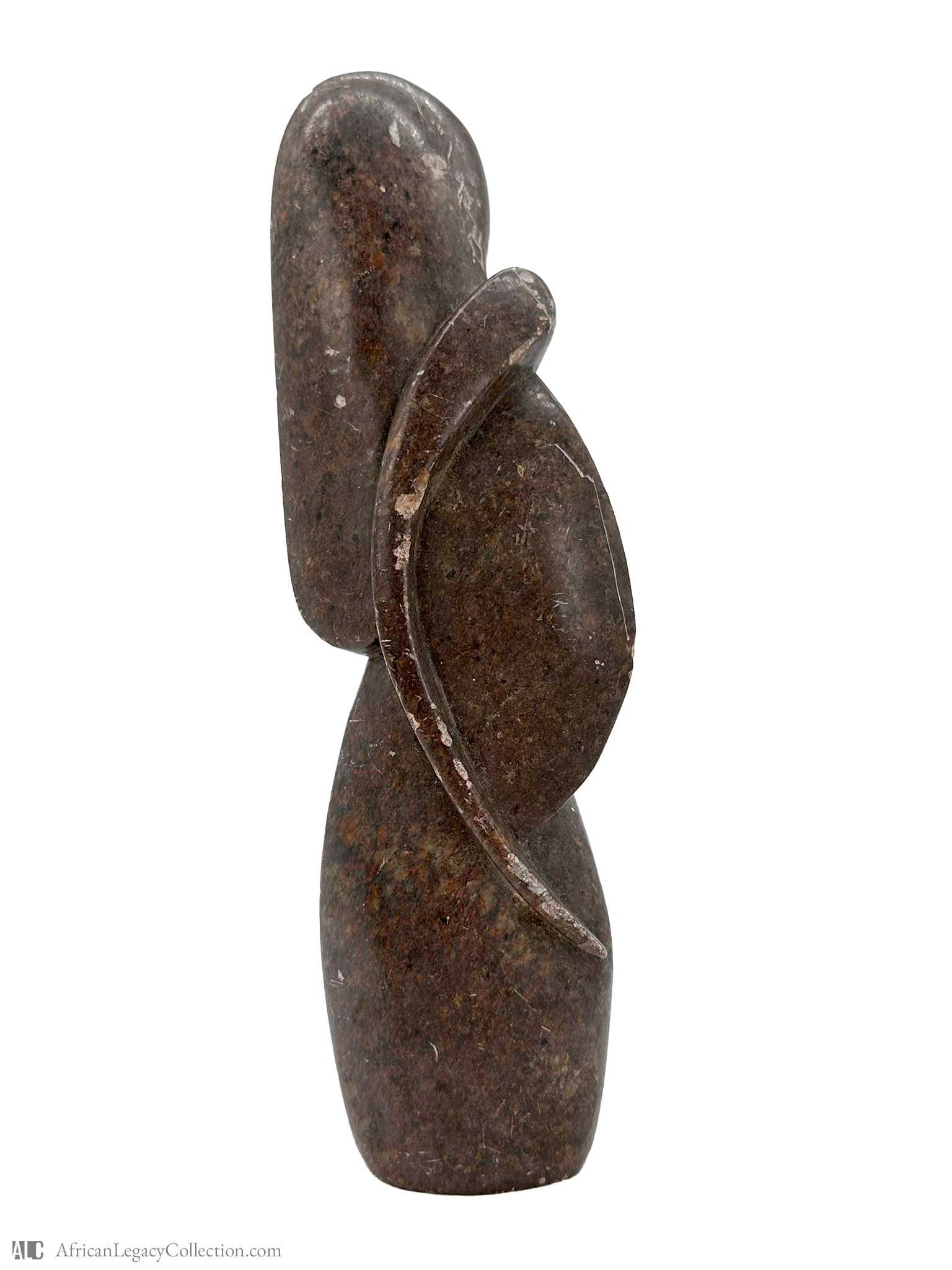 Crafted from a single piece of stone, this artwork displays smooth, polished surfaces indicative of traditional stone-carving techniques. It reflects the influence of modern artistic movements while retaining cultural motifs. The work is significant for its blend of contemporary style with traditional craftsmanship, highlighting the dynamic evolution of African art.