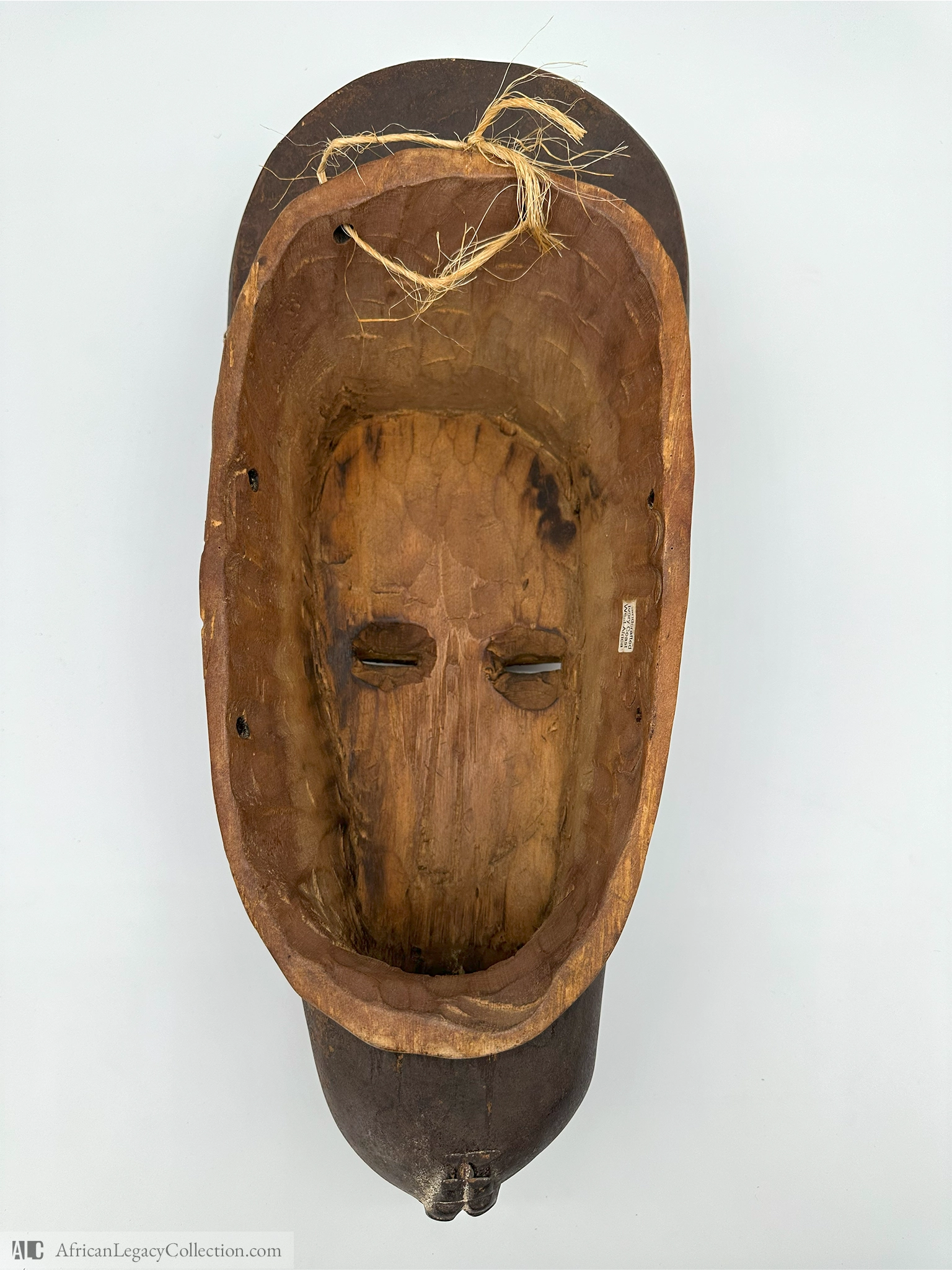 Crafted from wood, the mask exhibits intricately carved scarification motifs, symbolizing cultural heritage. The craftsmanship and style are indicative of early 20th-century African art. This mask holds significant cultural value, reflecting the artistry and spiritual traditions of its people.