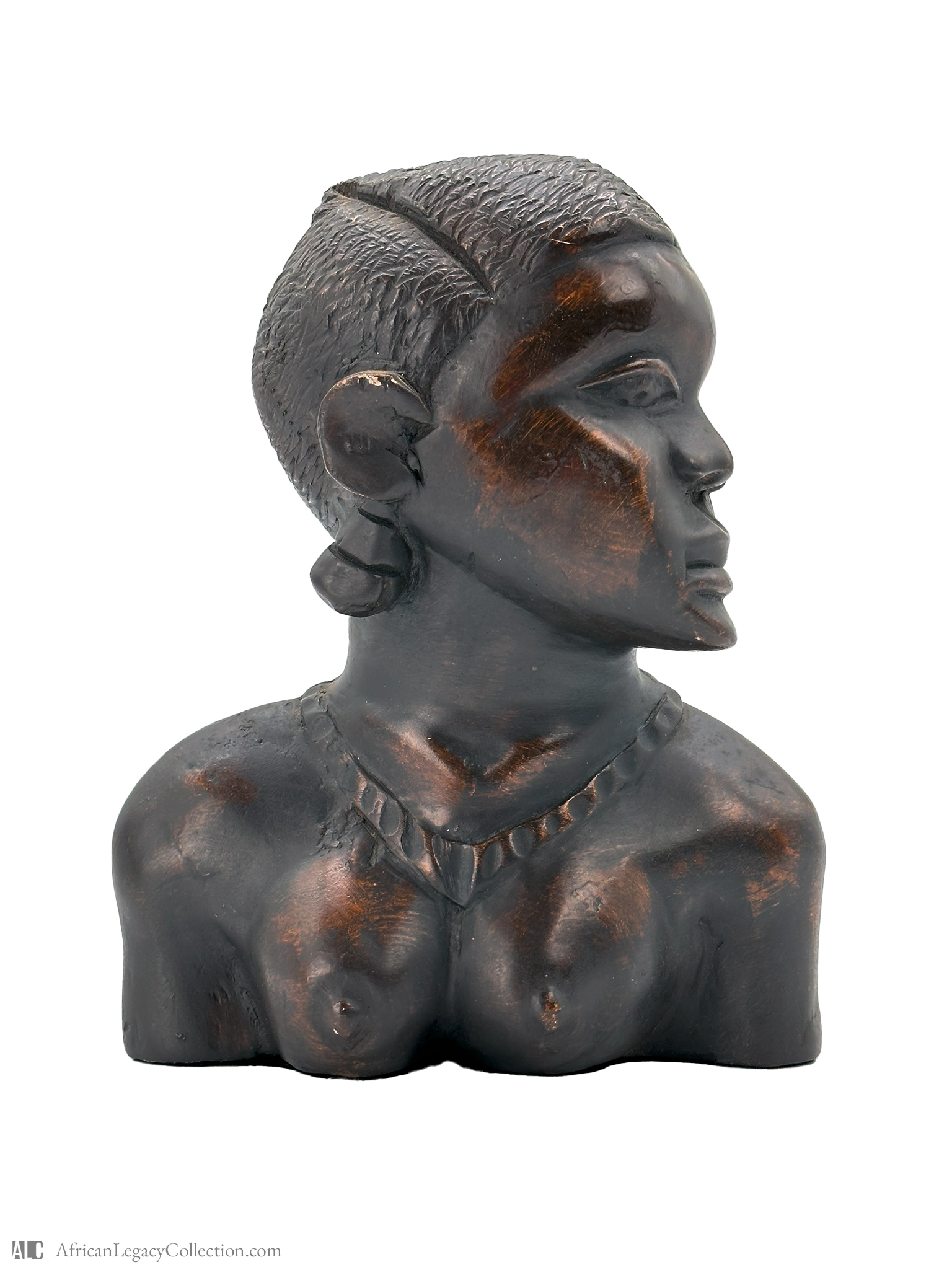 This bust represents an example of African sculpture, possibly originating from West Africa. The piece likely served decorative or ceremonial purposes, reflecting the cultural significance of portraiture in African art traditions.