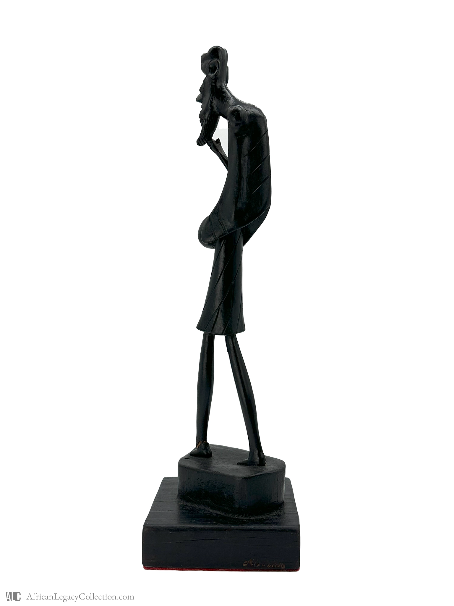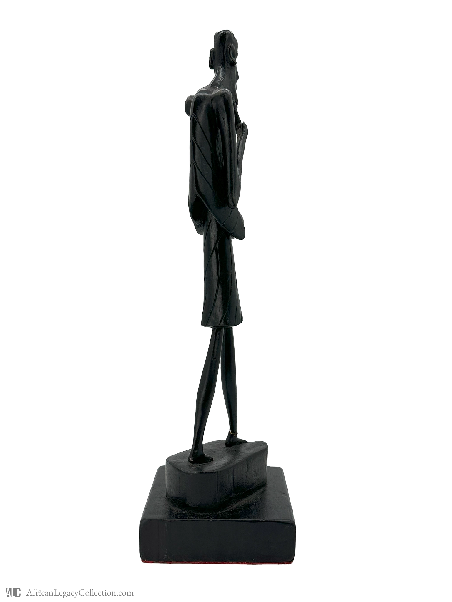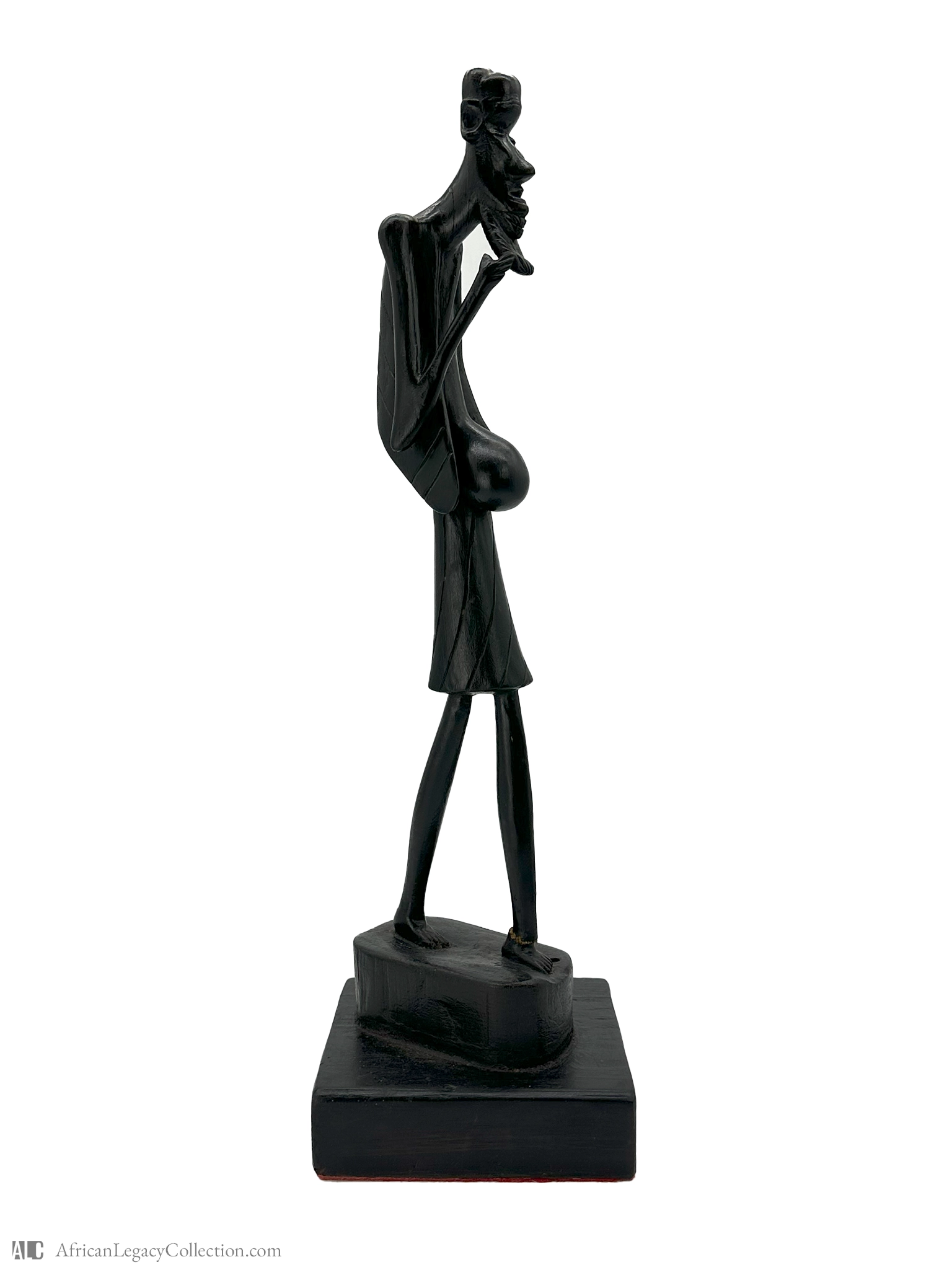 This sculpture represents an elongated human figure, likely serving an aesthetic or symbolic purpose. The piece appears to originate from East Africa, where such stylized forms are common in traditional art. Its purpose may have been tied to storytelling or cultural expression, illustrating a scene or character.
