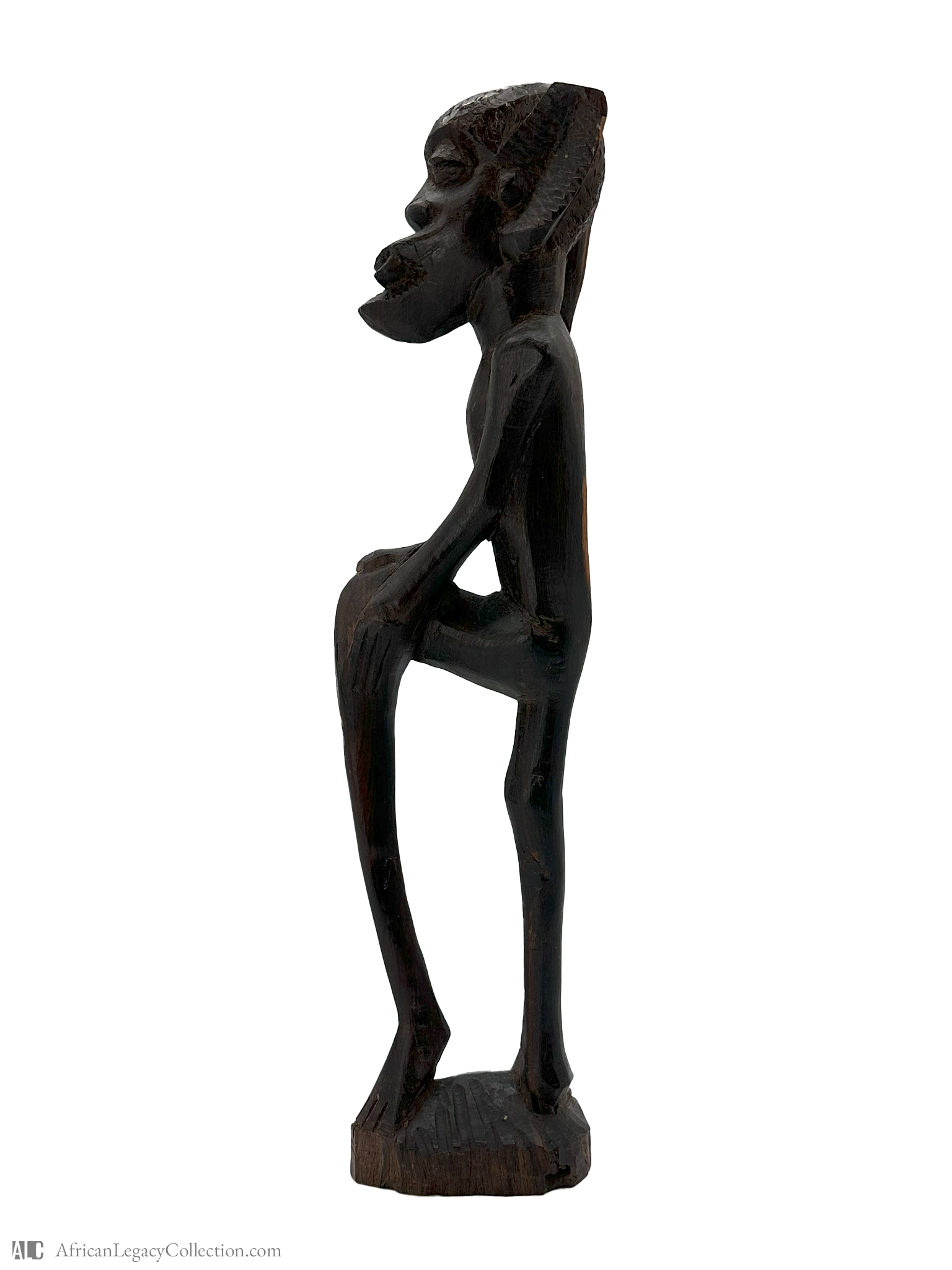 This wooden sculpture likely originates from the West African region and appears to represent an anthropomorphic figure, suggesting its use in ritualistic or ceremonial contexts. The stylization of the features may indicate its role in storytelling or as a representation of spiritual beliefs within a community.