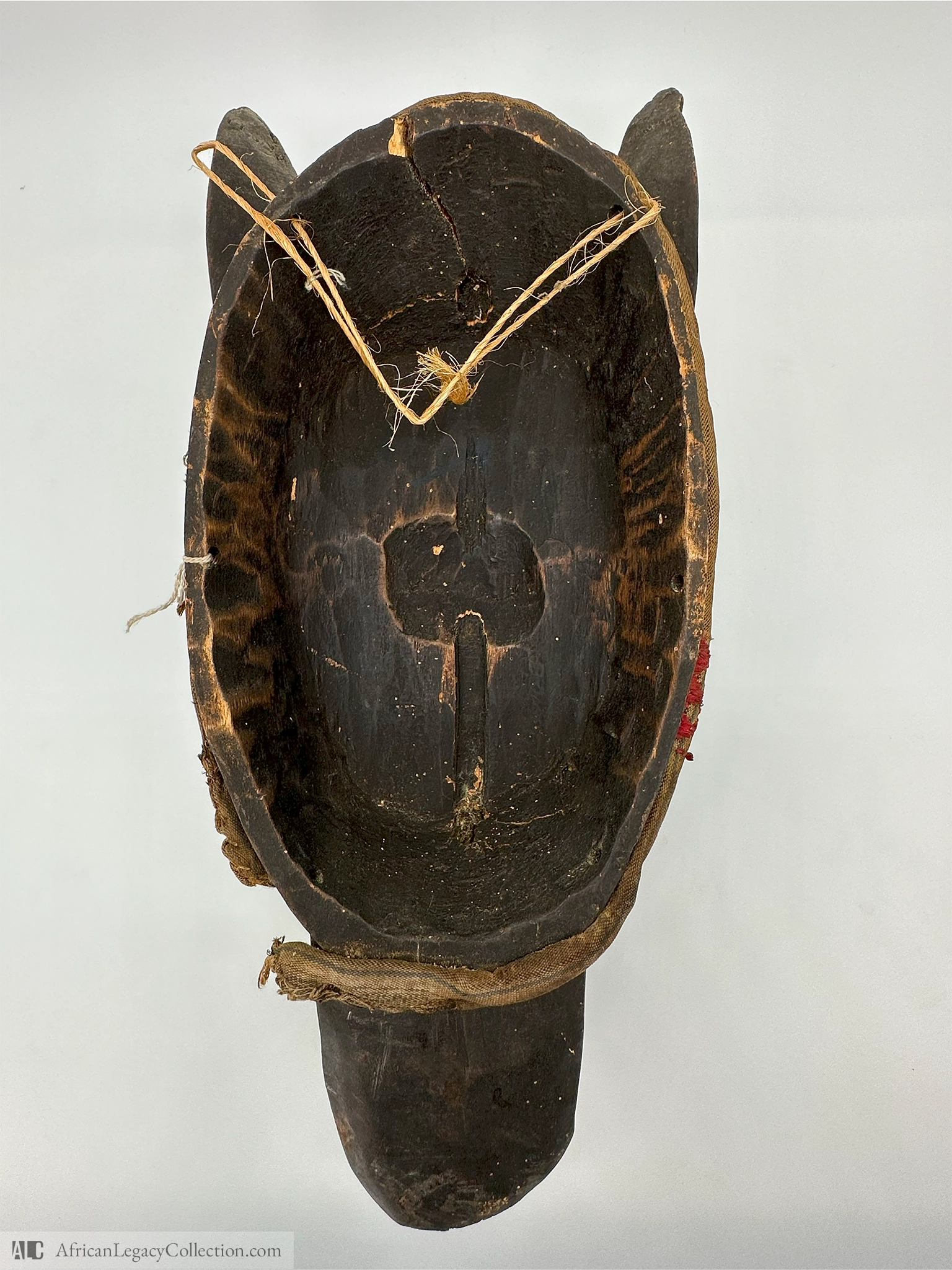 Crafted primarily from wood, the mask exhibits signs of age through its patina and possible incised striations that could indicate traditional carving techniques. These masks are significant in understanding the cultural and spiritual heritage of the communities they originate from, reflecting both artistic expertise and societal values of the time.