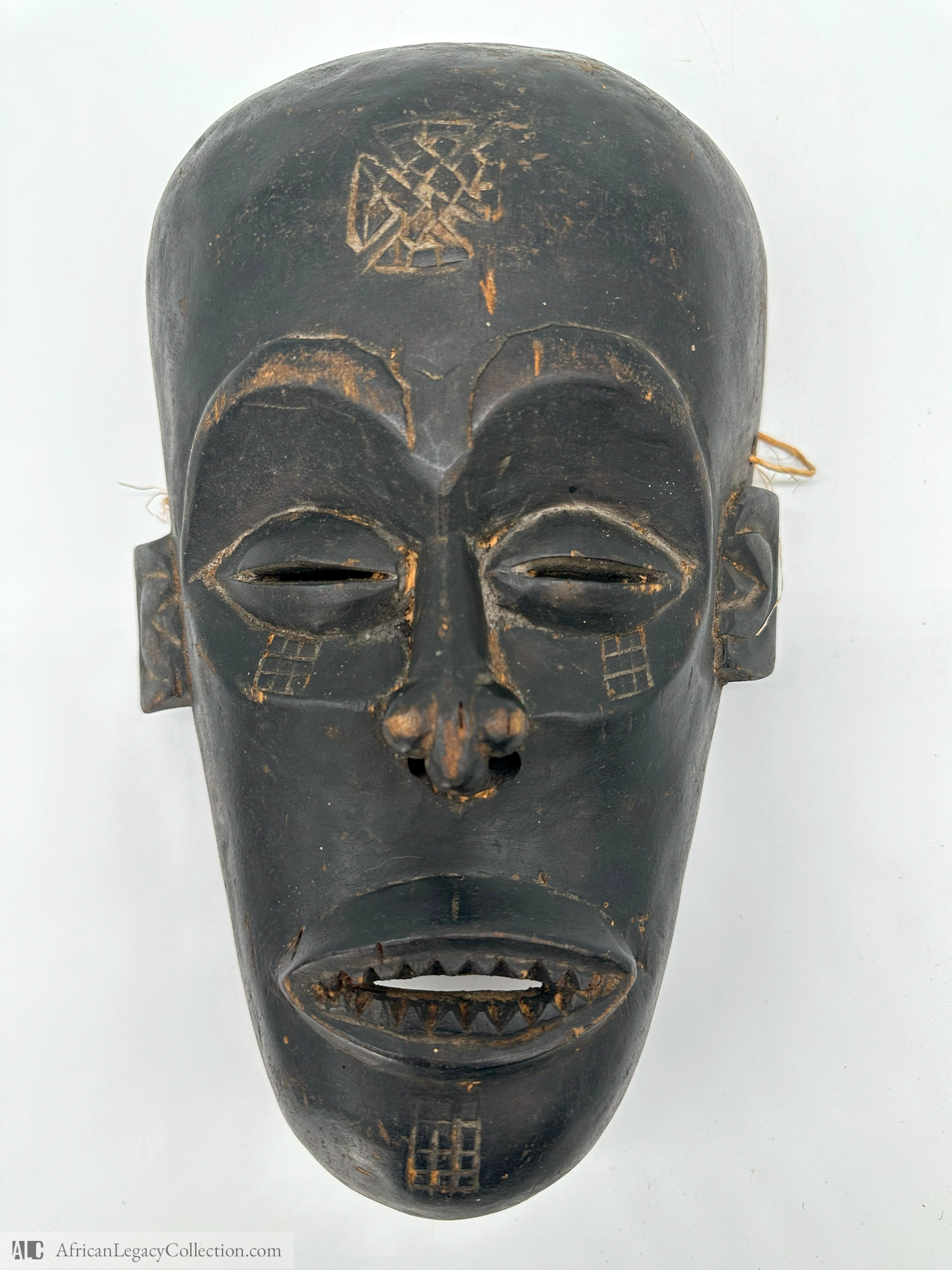 Crafted from wood using traditional carving techniques, this mask embodies the artistic heritage of its culture. The application of scarification motifs provides insight into its historical and symbolic significance, representing identity and status within the community.