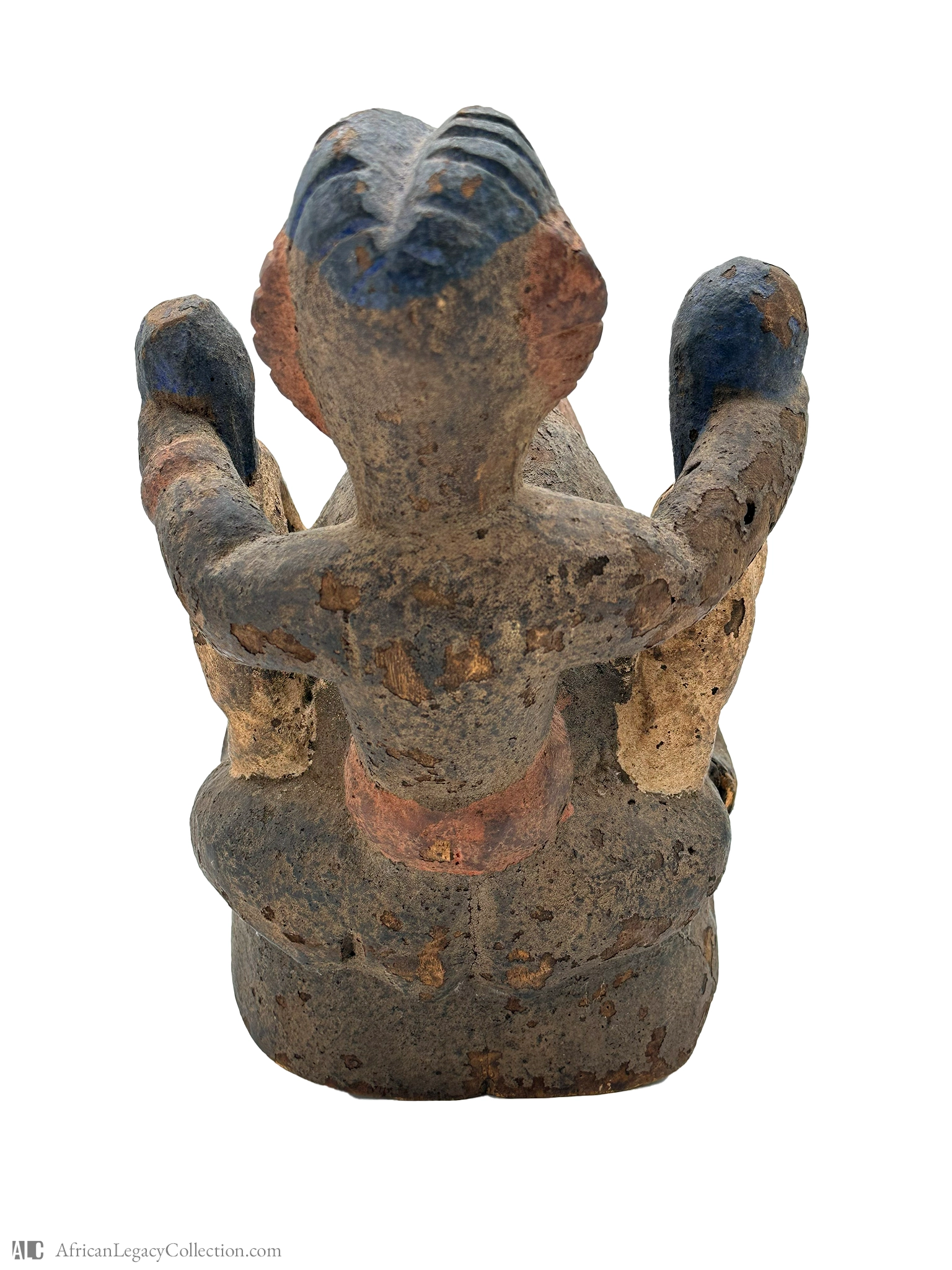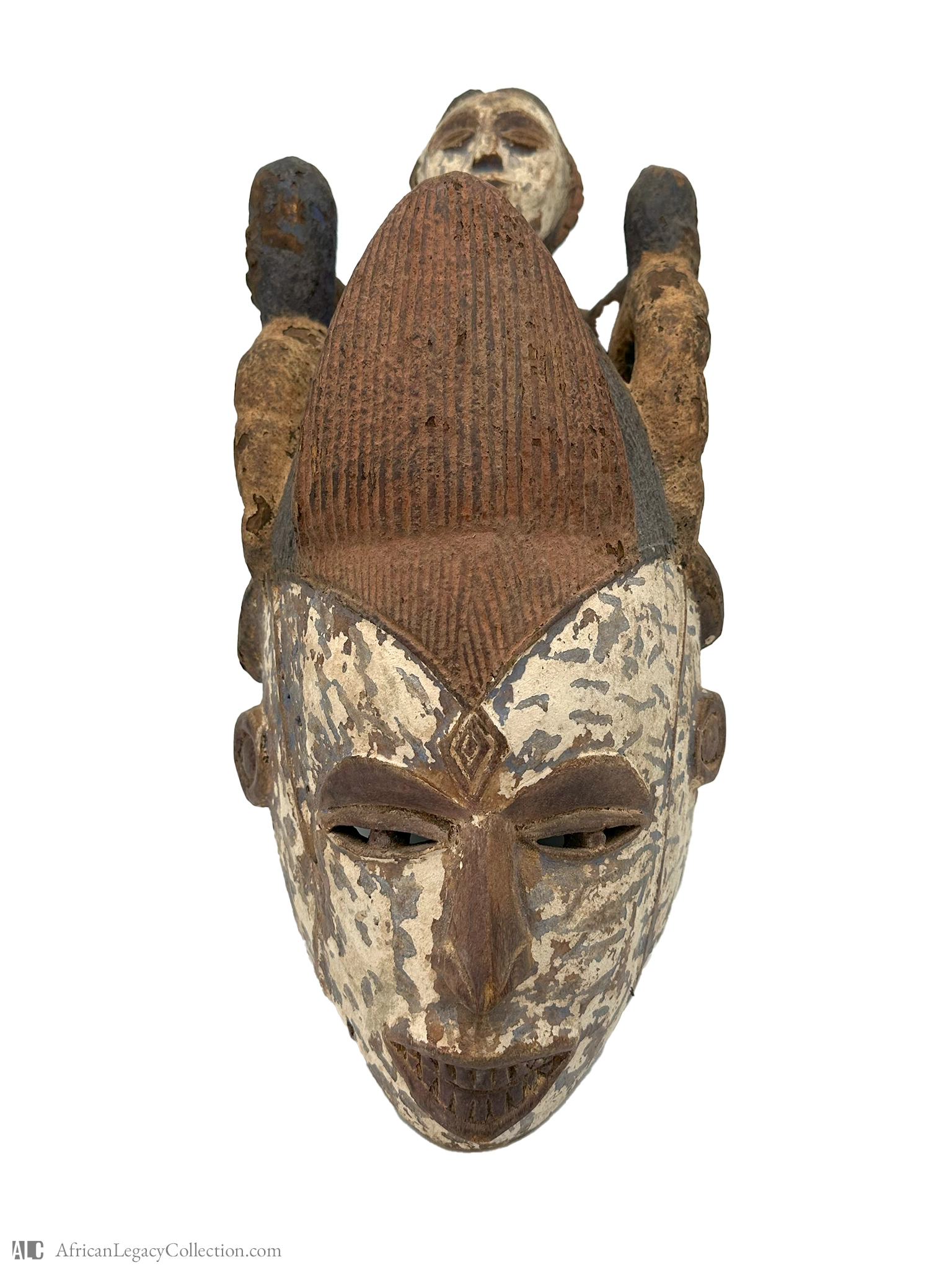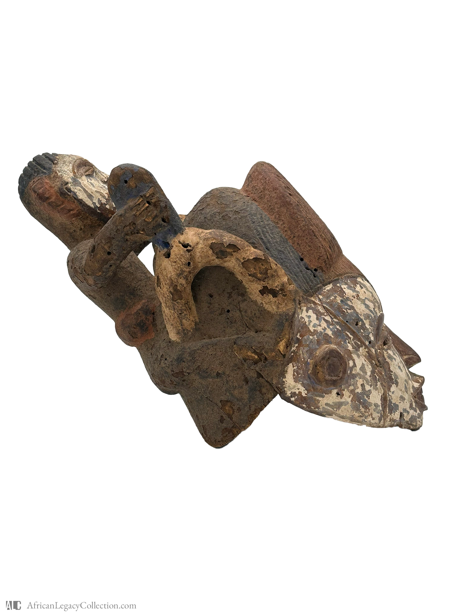 This artifact is an African mask likely originating from the West African region. Such masks are often used in ceremonial dances and rituals, possibly serving as a medium to connect with ancestors or spirits. The stylized human features suggest an anthropomorphic purpose, typical in many African cultures for both celebration and communication with the divine.