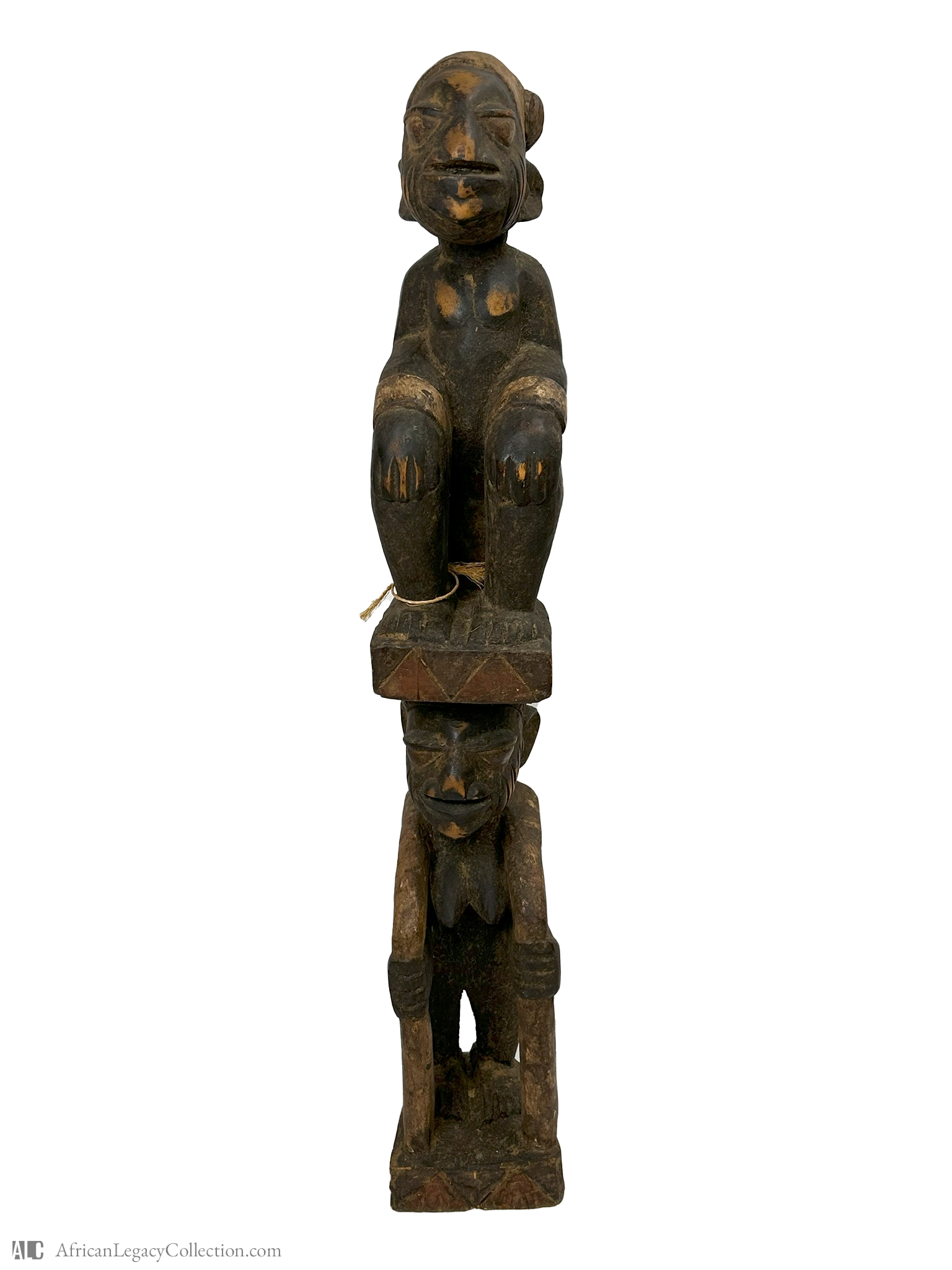 Crafted from wood, this piece exhibits detailed carvings suggesting a use of tools and techniques like carving, and possibly incised striations. The iconography points to a historical period rich with tribal symbolism and societal roles. This artifact highlights the cultural heritage and artistry of African communities.