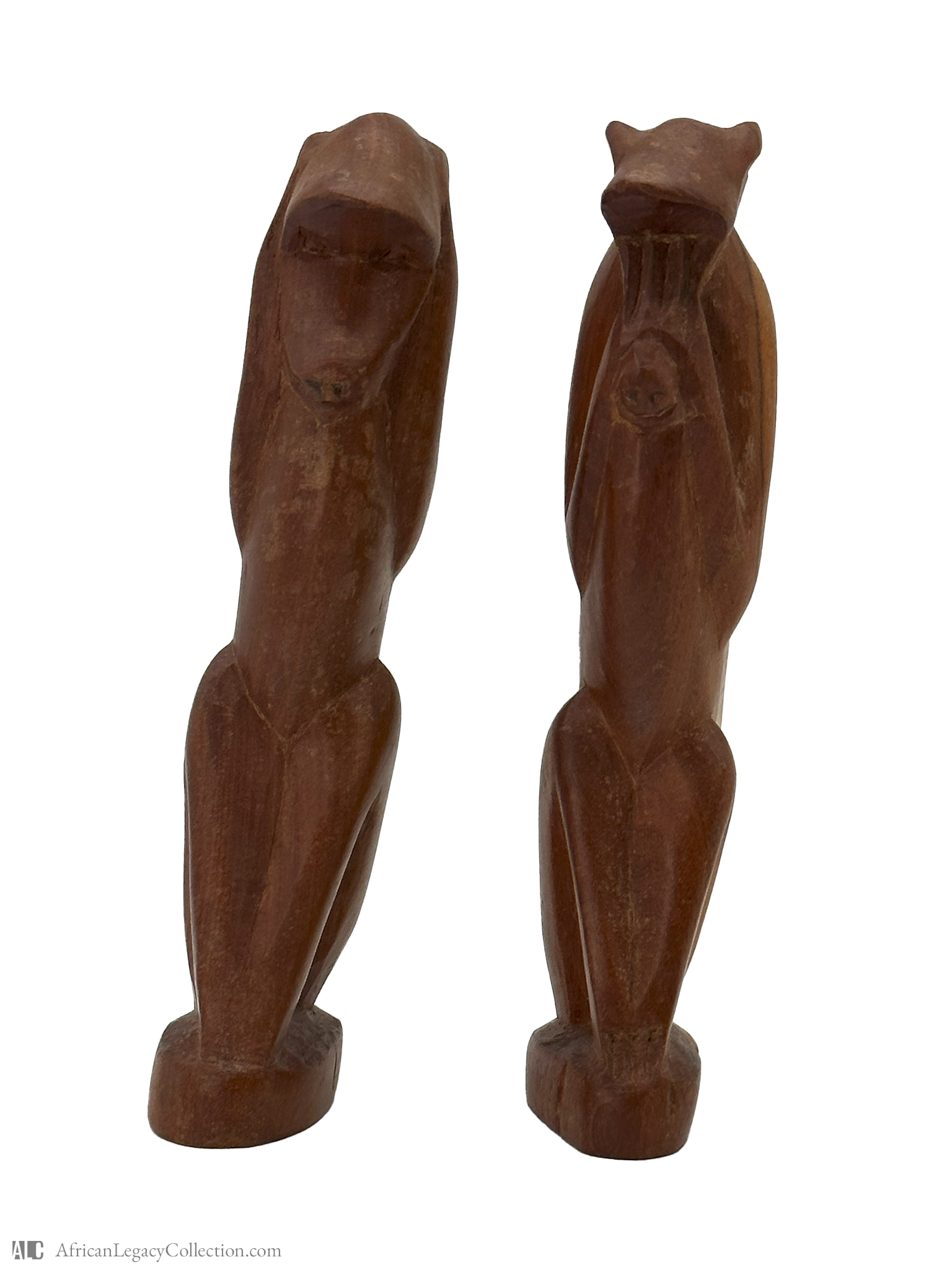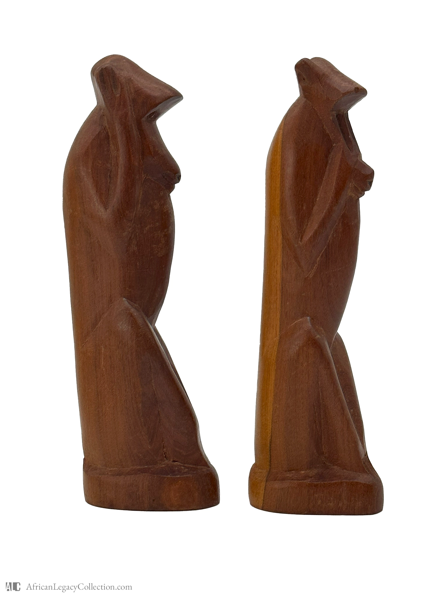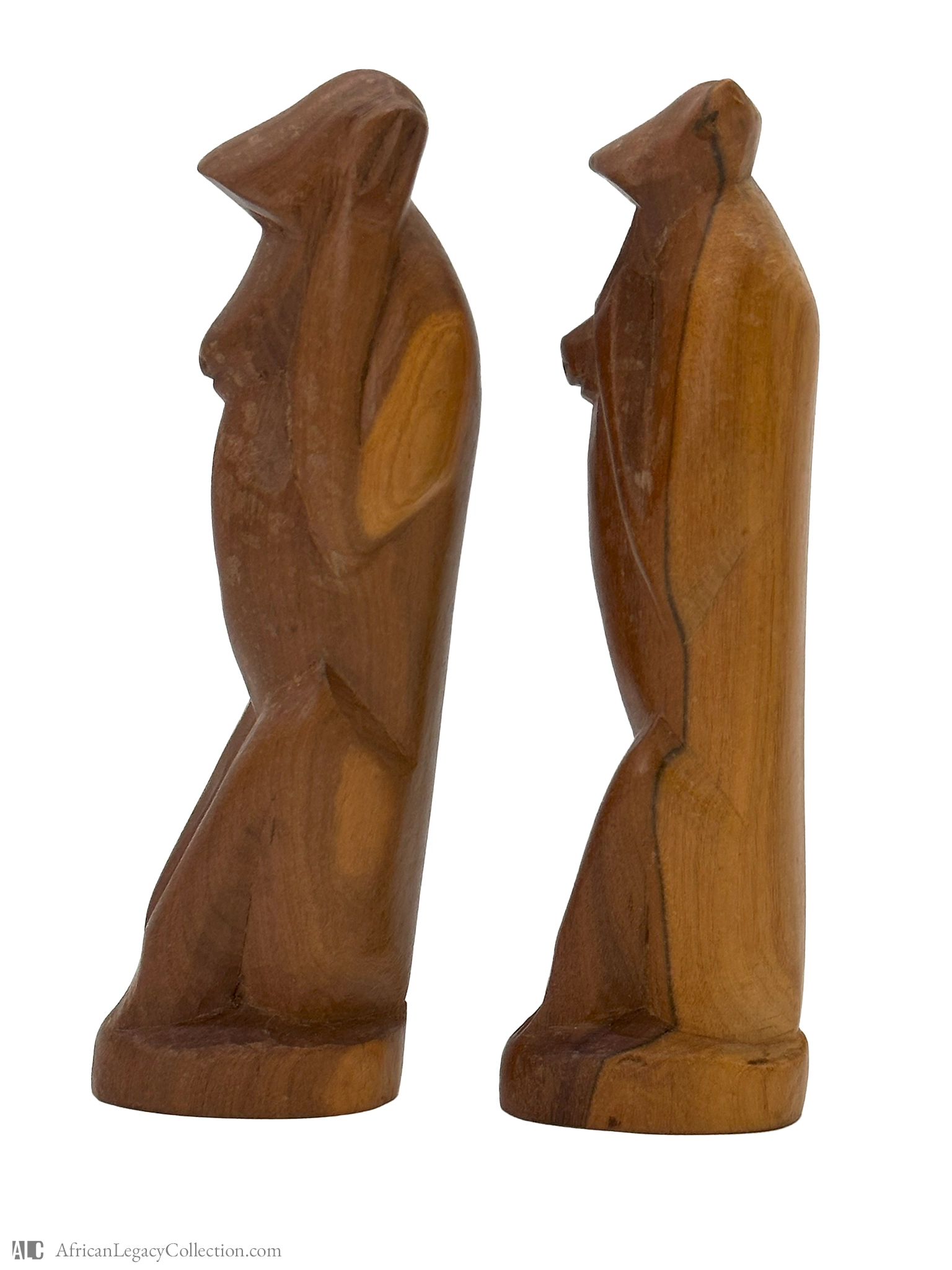 Crafted from a single piece of wood, these figures demonstrate skillful carving techniques familiar in African art. They represent traditional forms that may have been significant in the cultural heritage and social customs of their region. Their style and form point to historical practices focused on spirituality and community life.