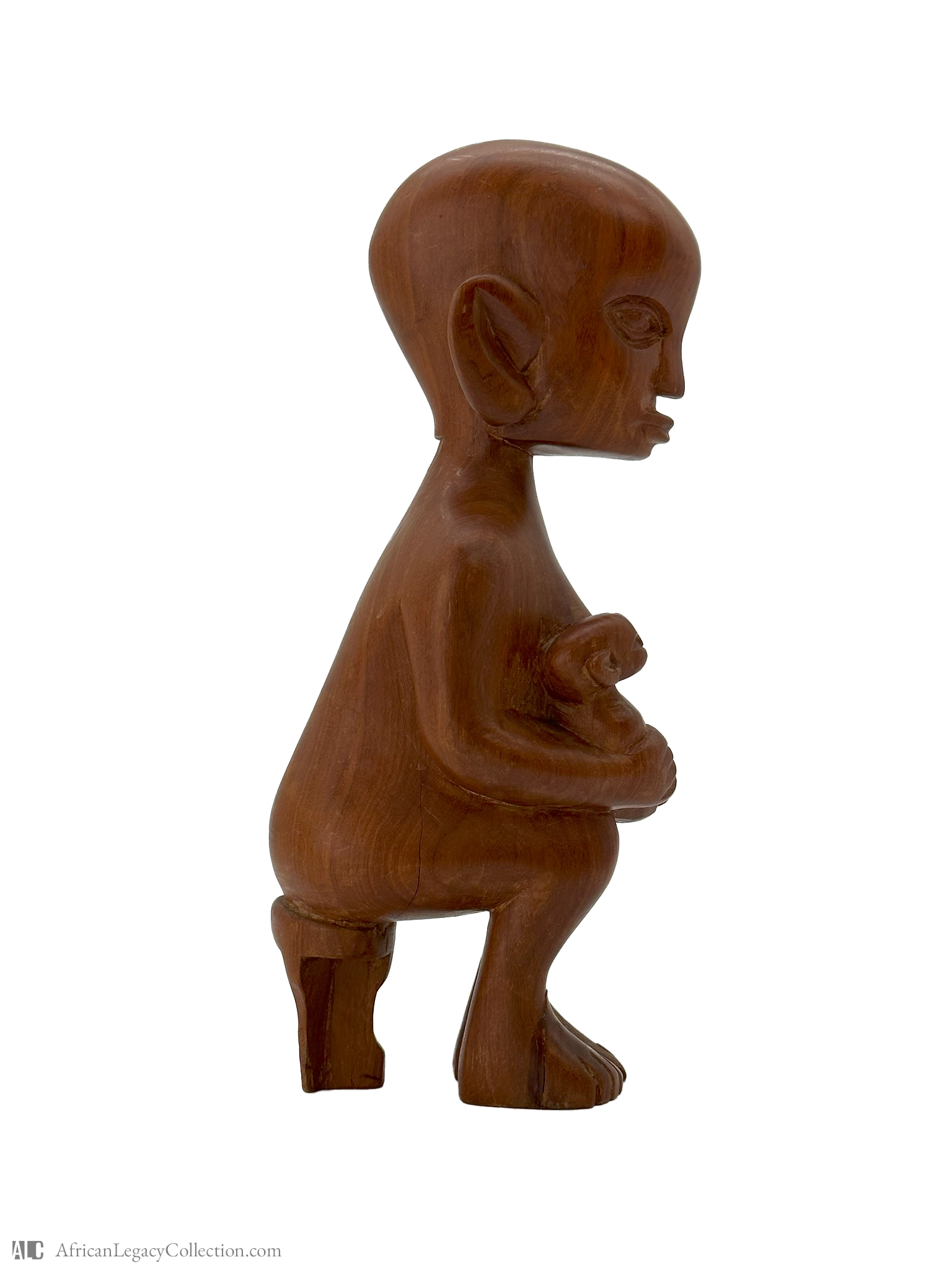 Crafted from a single piece of wood, the figure showcases detailed carving techniques. This sculpture, reflecting cultural practices, may have been created in the mid-20th century. The emphasis on motherhood highlights its significance in traditional societies, where family and lineage are central themes.