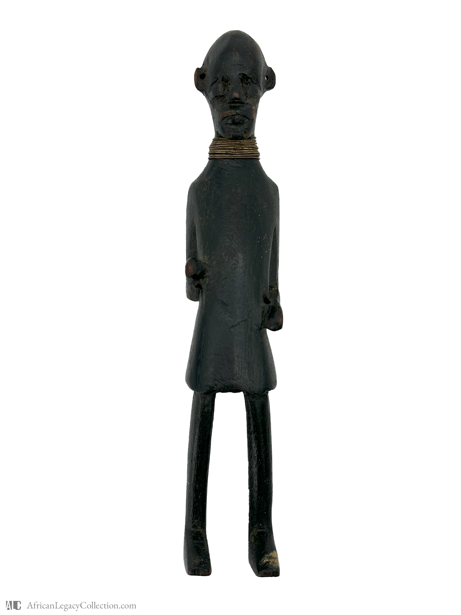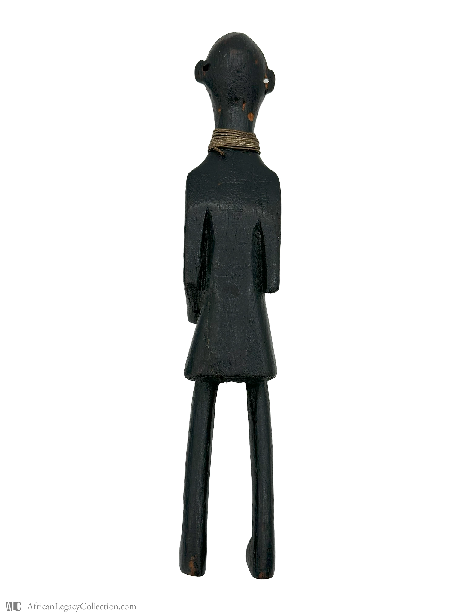 This figure is a representation of an ancestral spirit, likely originating from West Africa. Figures like these are typically used in rituals to honor ancestors and invoke their protection or guidance. The stylization suggests a cultural role deeply connected with community beliefs and customs.