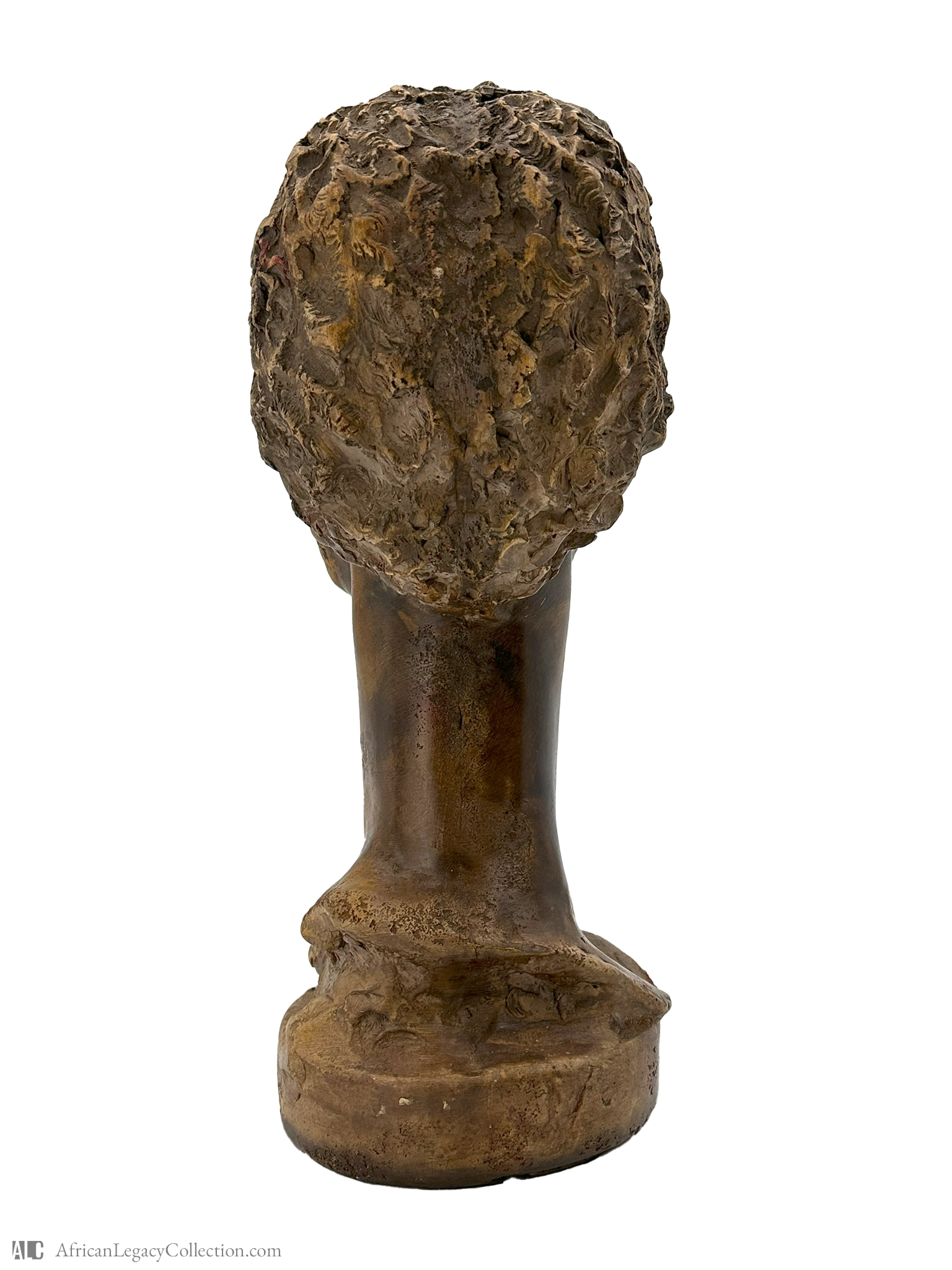 Crafted using the lost-wax casting technique, a method prevalent in African metalworking, this bust is made primarily of bronze. The detailing of the features indicates a period when such artistic expressions were common, reflecting a rich cultural heritage. The sculpture holds cultural significance, offering insights into the craftsmanship and aesthetic values of its time.