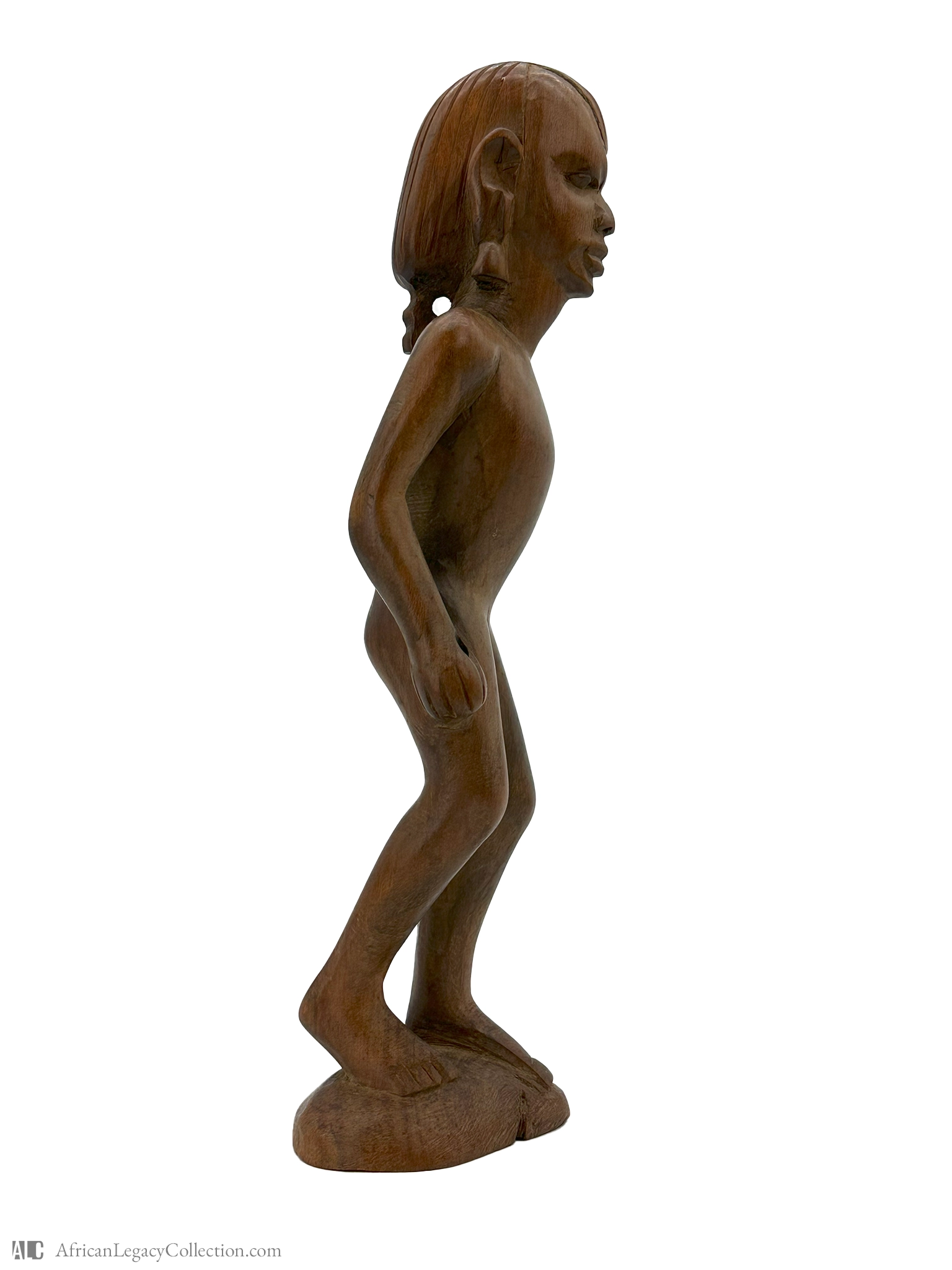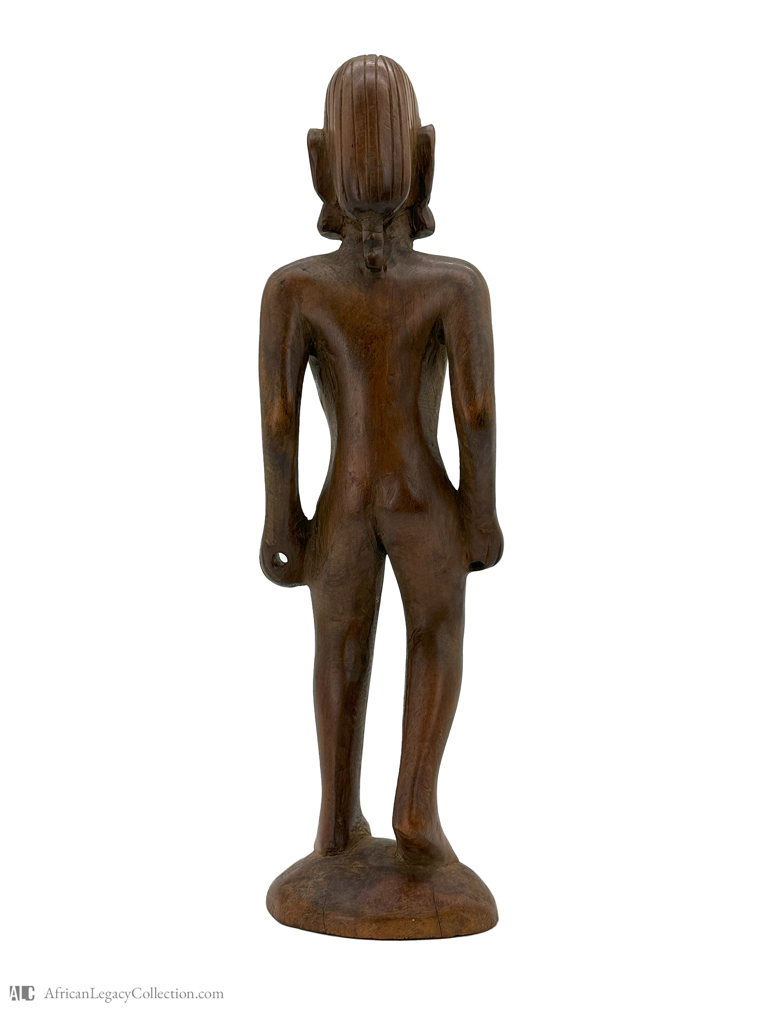 Carved from a single piece of wood, the statue features distinct scarification motifs indicative of personal or tribal identity. Its creation may date back to the early to mid-20th century, reflecting the artistic traditions of the period. Such artifacts often hold a central place in traditional African spiritual and social practices.