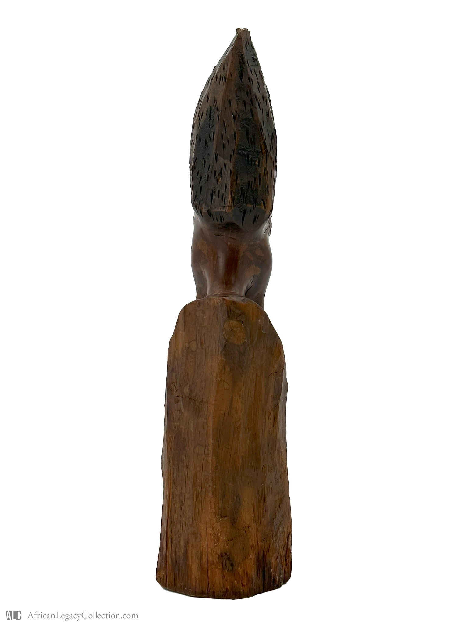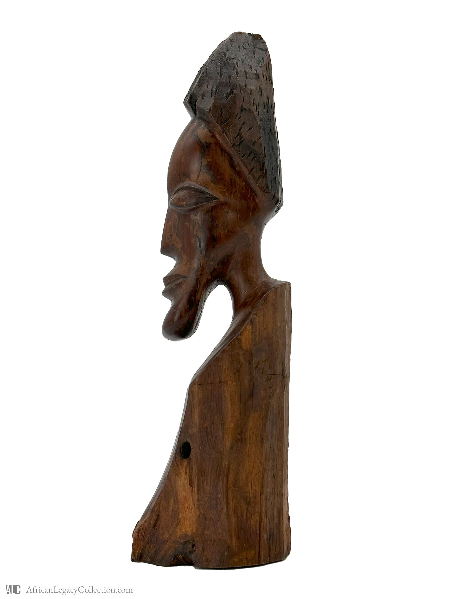 Crafted from a single piece of wood, the sculpture shows skilled carving techniques. The patina indicates age and cultural significance, perhaps dating back several generations. The piece highlights the importance of ancestral veneration and artistic expression in African societies.