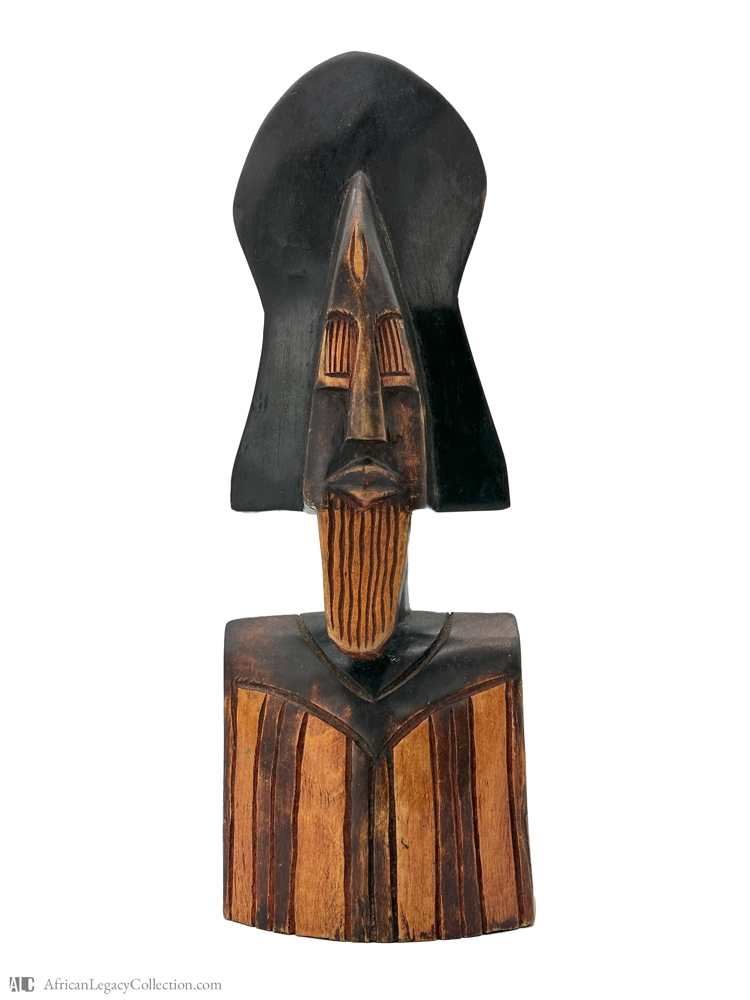 Crafted from wood, this piece exhibits incised striations, typical of African art’s intricate detailing. The use of natural wood highlights and dark stains demonstrates traditional woodworking techniques that can be associated with historical practices in the region. Its significance lies in its ability to convey cultural stories and spiritual beliefs, influencing both local and global understandings of African art.