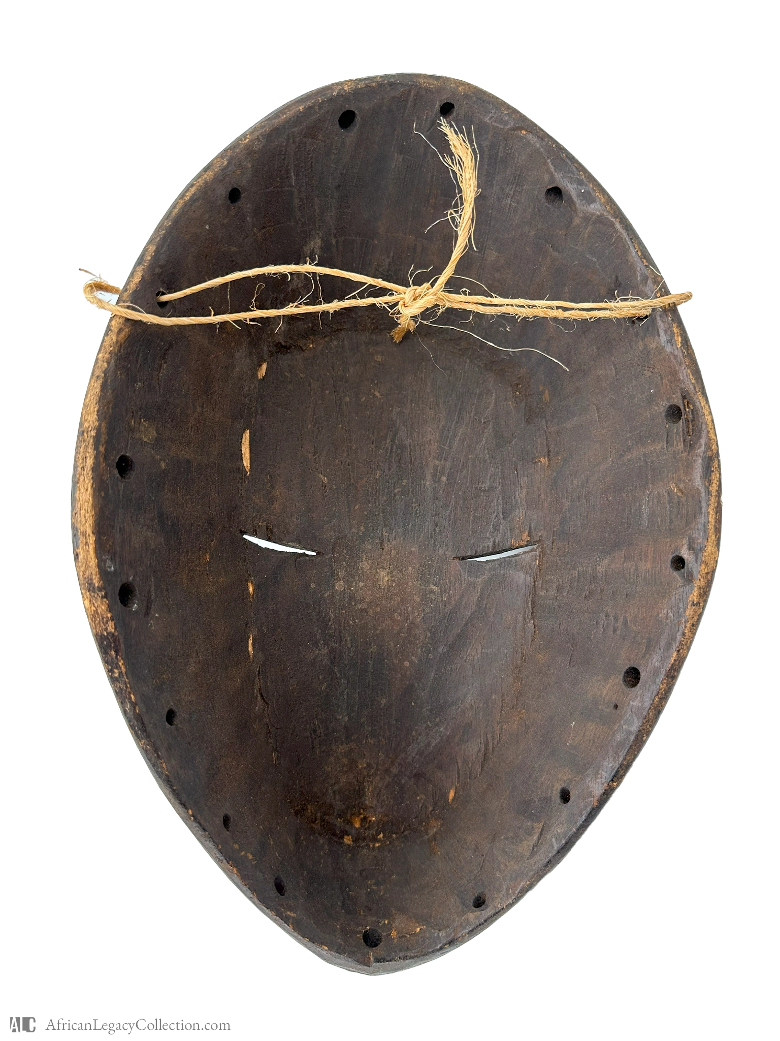 Crafted primarily from wood, the mask exhibits signs of traditional carving techniques and a natural patina, suggesting its historical usage over time. Its design and materials reflect the artistic traditions of the region, encapsulating both spiritual and cultural significance in its form and function.